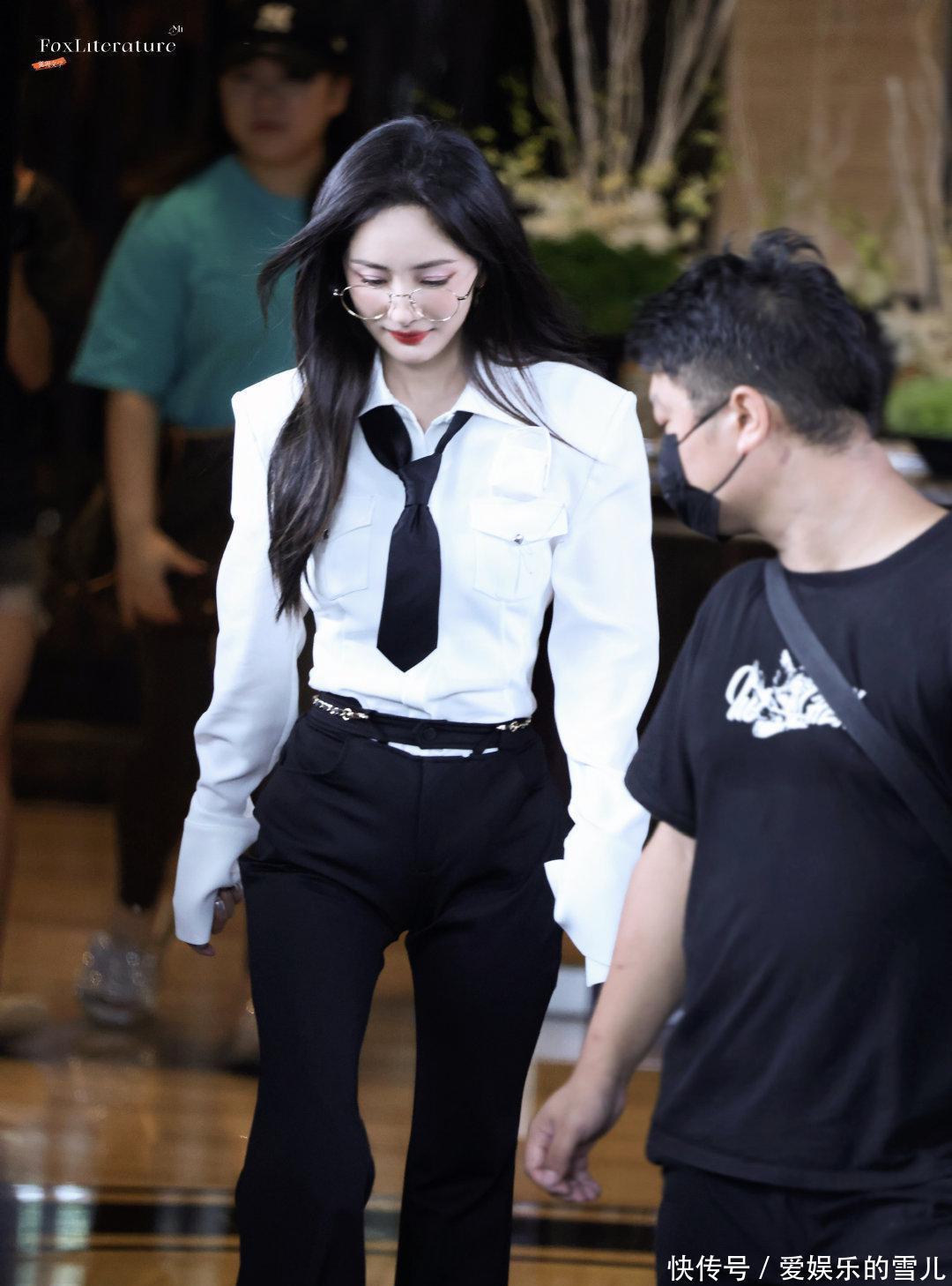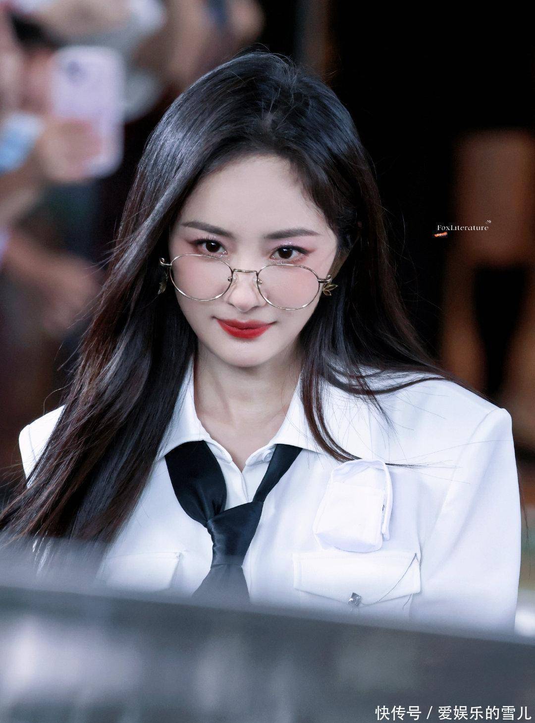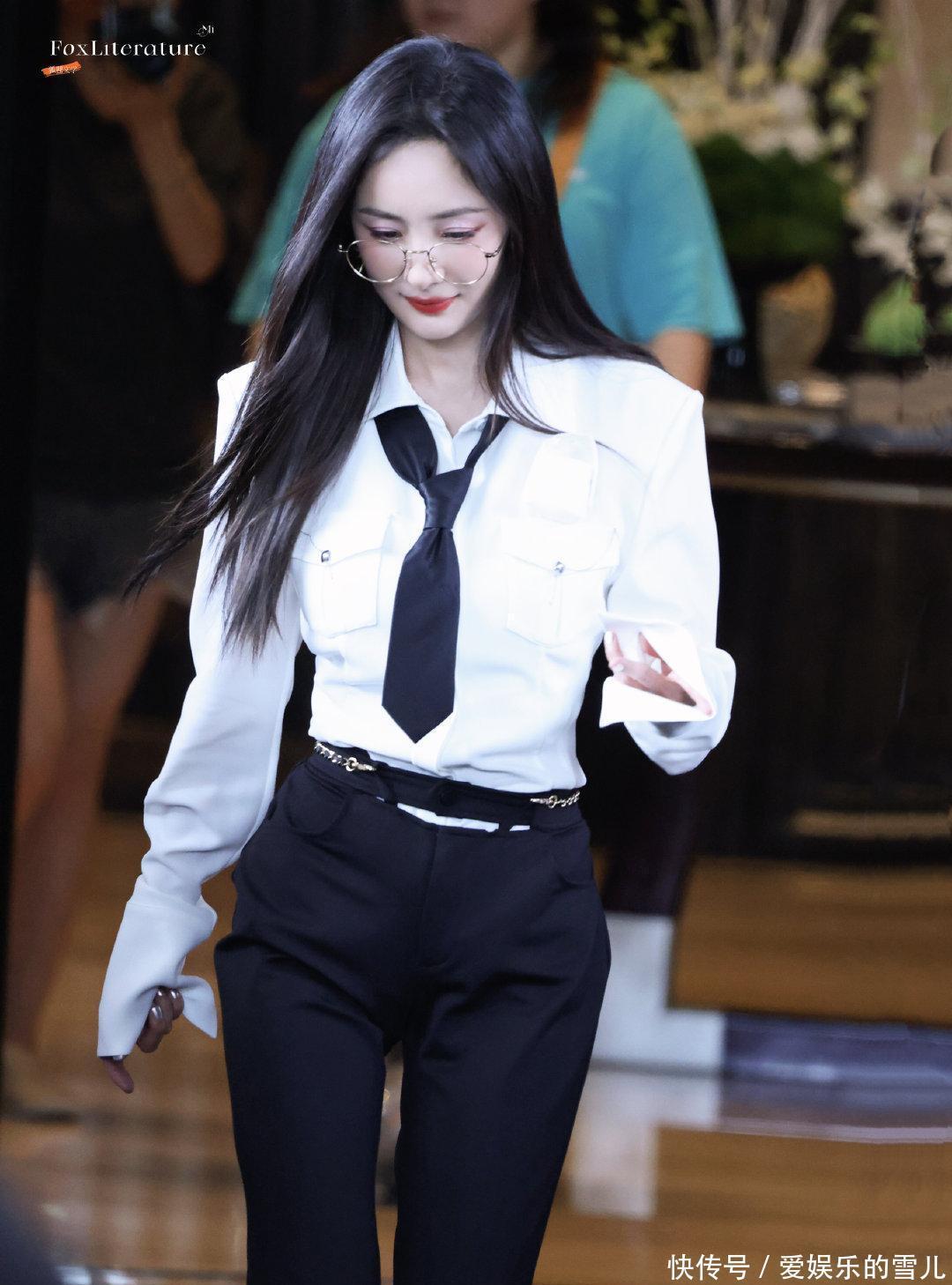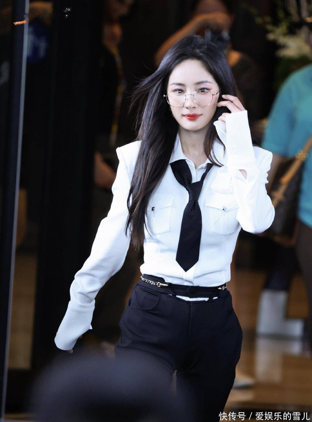 一直以来,杨幂在大众心中的形象丰富多样,有少女感十足的,有优雅妩媚的。而这次她以白衬衫、黑领带搭配金丝眼镜的造型出现,成功解锁了 “甜飒女精英” 的新人设,带来满满新鲜感。
